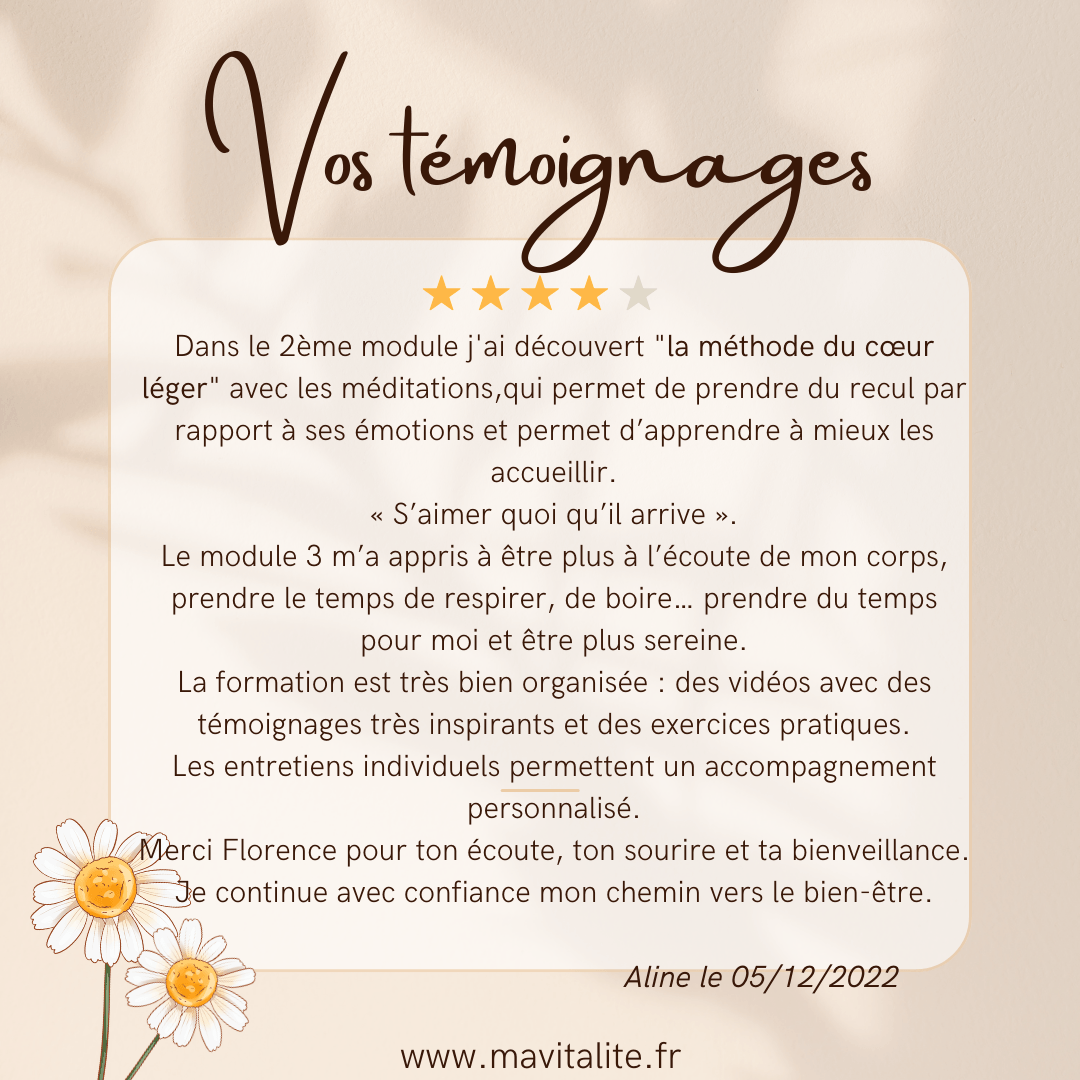 Tous les détails de mes accompagnements en ligne se trouvent sur l’onglet en haut « Accompagnements en ligne ».